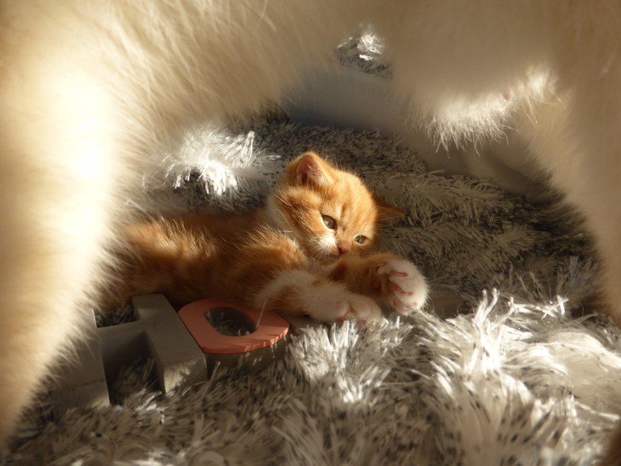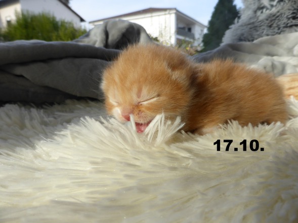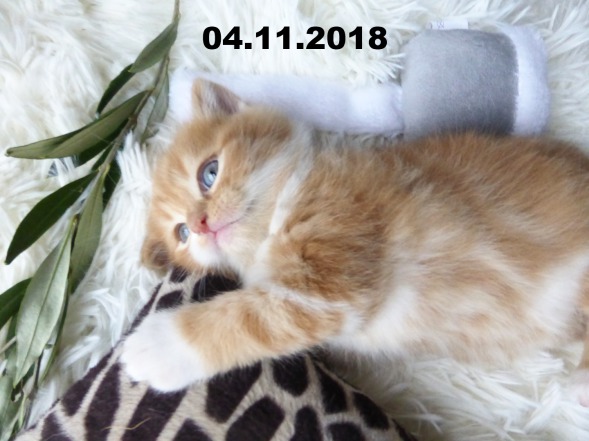 27.10.2018, über 450 Gramm bringt er schon auf die Waage mit 3 Wochen entwickelt sich unser kleiner Feger prächtig, spielt und schnurrt, kuschelt und beide Brüder lassen sich auch von unseren Kindern gerne "bemutttern".