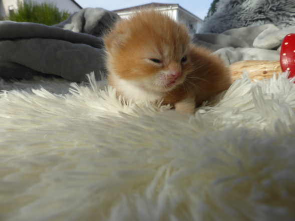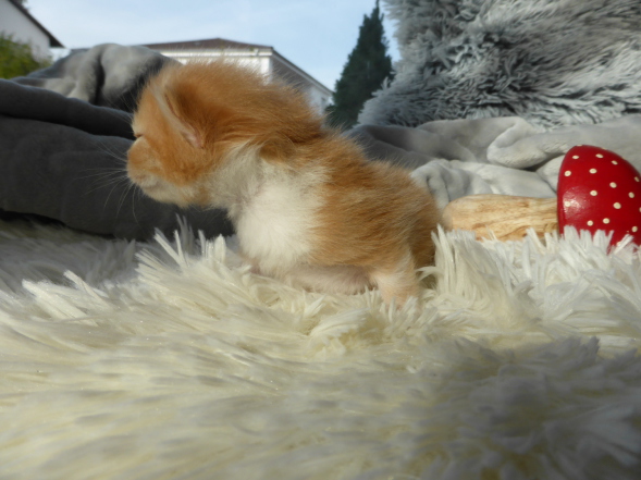 Unser roter Feuerball, wiegt mit 7 Wochen 930 Gramm :-), nächste Woche geht es ab zum impfen zu unserem Doktor unseres Vertrauens :-)), Ihr seid die Besten, liebe Tierarztpraxis Dr. Moch in Kirrlach :-))