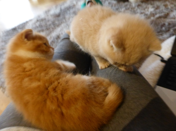 20.10.2018, mittlerweile sind unsere beiden Goldknöpfle 2 Wochen alt, haben Ihre Äuglein schon am 9.Tag geöffnet und flitzen schon fit und munter langsam herum. Gestern waren wir bei Dr. Moch in Kirrlach und Mami und Ihre zwei (Praxis) Jungs sind nach Ihrer ersten langen Fahrt und Untersuchung kein bisschen gestresst, unser Veterinär ist augenscheinlich begeistert von der Entwicklung unserer beiden Männer, schließlich stehen beide sehr gut im Futter und haben längst über 300 Gramm auf die Waage gebracht.